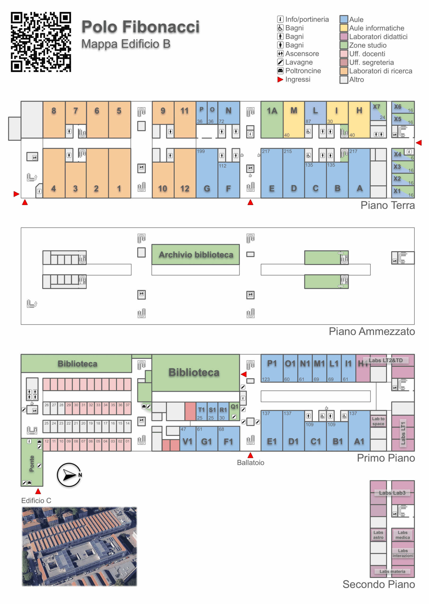 Per una mappa dell’Edificio B, inclusiva degli spazi studio e della localizzazione delle lavagne, fare riferimento a questa slide, riportata in png a seguire